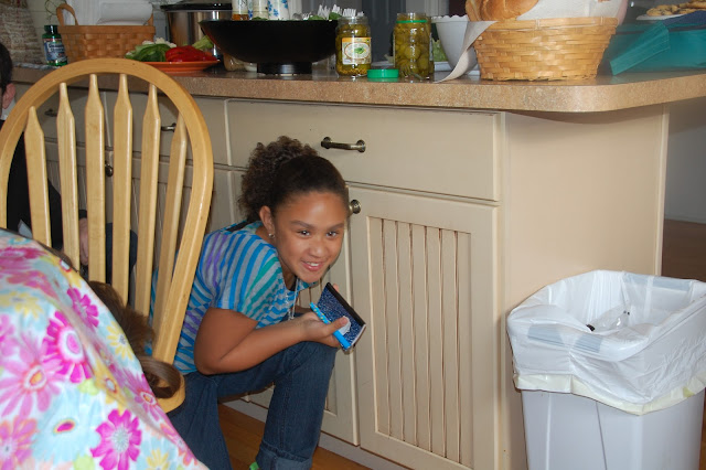 #3 daughter, next to the water cooler, apparently thinks her sister is quite comical.