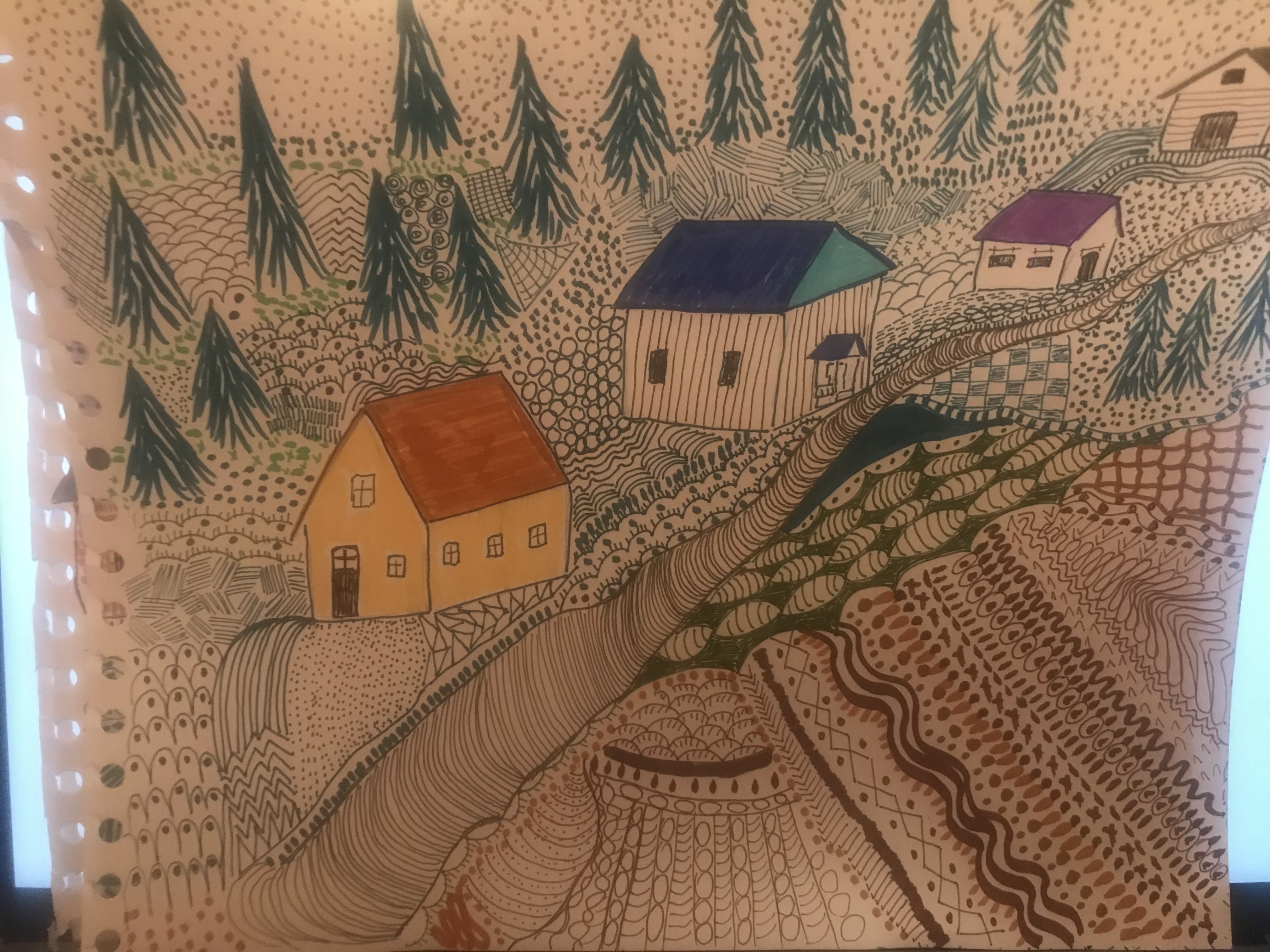 Your drawings are wonderful and I hope that you continue to share them with us. They remind me of embroidery. The houses also remind me of the houses created by the lovely and talented Deanne Fitzpatrick, a rug hooker in Nova Scotia. Her hooking tells a story.